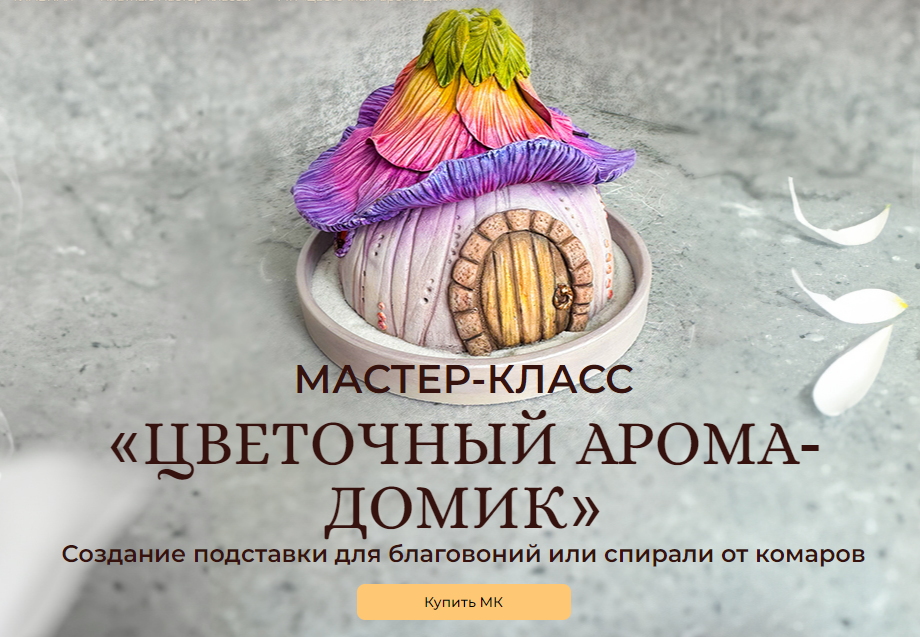 Мастер-класс посвящён тому, как создать цветочный домик для благовоний или спирали от комаров. Или вы можете сделать его просто декором без какого-либо функционала. Я леплю из привычного мне материала — самозастывающей массы из шпатлёвки и ПВА. В мастер-классе есть подробный рецепт. Вы можете лепить из привычного вам материала или попробовать эту массу. Но я не могу дать вам гарантий, что ваш материал выдержит тепло от благовоний или спирали от комаров.