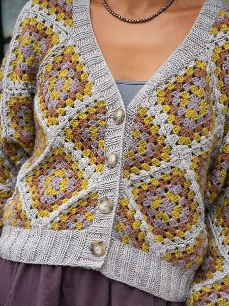 Сейчас одежда, связанная в технике «бабушкин квадрат», снова в тренде благодаря ностальгии по 70-м и возрождению интереса к хендмейду. Такие вещи носят не только в бохо-образах, но и комбинируют с современной базовой одеждой для стильного контраста.