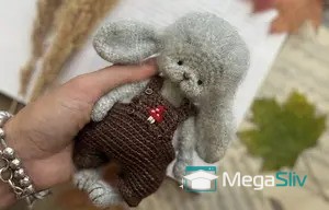 Зайчик получается не большой, в зависимости от выбранной пряжи и плотности вязания 12-16 см