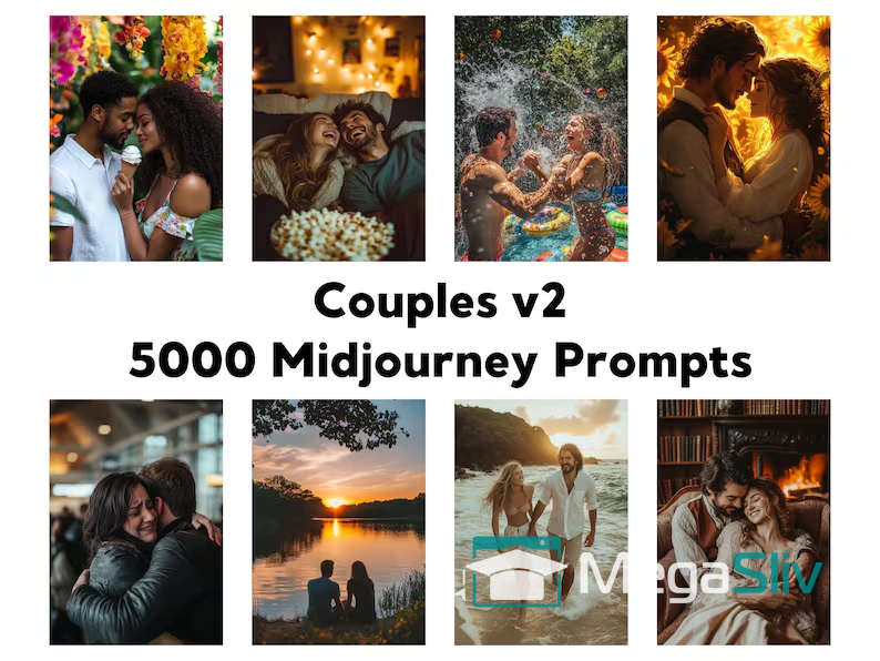 Поднимите свое творческое путешествие на новый уровень с 5000 Couples Love MidJourney Prompts - лучшей коллекцией для цифровых творцов. Создаете ли вы романтические арт-принты, свадебные приглашения, юбилейные открытки, подарки ко Дню святого Валентина или постеры на тему пары - эта подборка подарит вам бесконечное вдохновение. Идеально подходящие для таких платформ, как MidJourney, DALLE, Stable Diffusion и Leonardo AI, эти подсказки помогут вам создать потрясающие визуальные образы для вдохновленных любовью проектов, персонализированных подарков и романтического домашнего декора.
