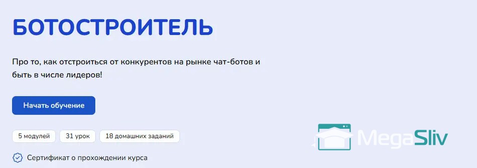 Ботостроитель - это пошаговый курс, который представлен 4 основными модулями, которые важно надо проходить постепенно.