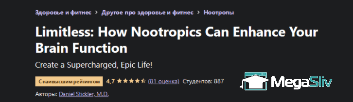 Вы наверняка видели или хотя бы слышали о фильме « Безграничный» . Это не просто фильм ... это реальная возможность. Вы можете бесконечно расширять свой потенциал и, по сути, стать безграничным. И я покажу вам, как это сделать. В этом курсе вы узнаете о ноотропах - пищевых добавках, функциональных продуктах и лекарствах, которые могут улучшить работу вашего мозга способами, о которых вы даже не можете себе представить. Присоединяйтесь ко мне, чтобы исследовать этот захватывающий мир ноотропов, где вы откроете для себя способы оптимизировать работу вашего мозга, расширить свою способность сосредотачиваться, повысить свой творческий потенциал и создать эпическую, насыщенную жизнь!