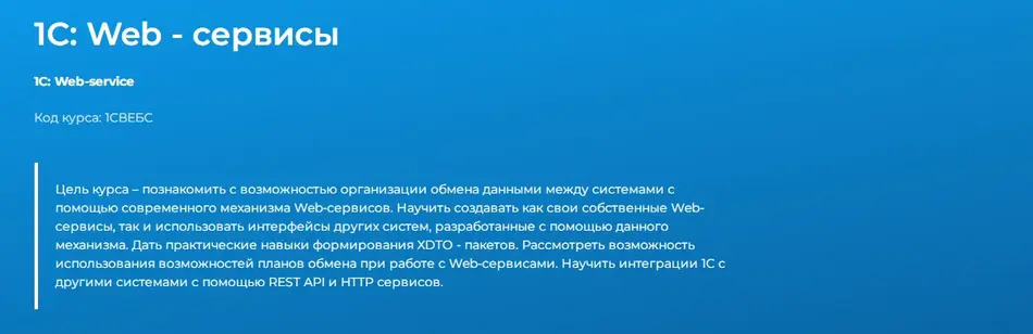 Многие работодатели при приеме на работу обращают внимание на знание механизма Web-сервисов. Если вы хотите подтвердить свой профессионализм и повысить шансы на трудоустройство, приглашаем на авторский курс «1С: Web-сервисы»!