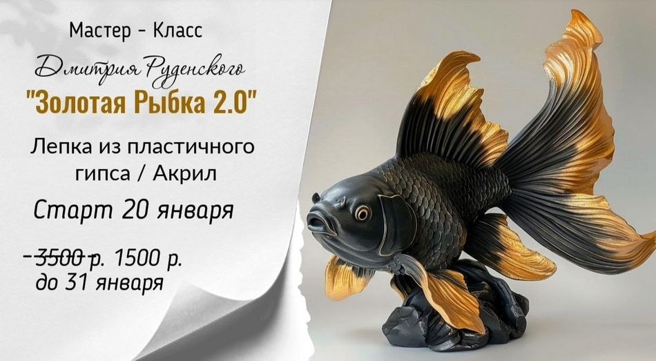 20 января стартует новый МК Дмитрия Руденского "Золотая рыбка 2.0", где вы сможете создать уникальную рыбку-шкатулку из пластичного гипса и украсить её яркими акриловыми красками!