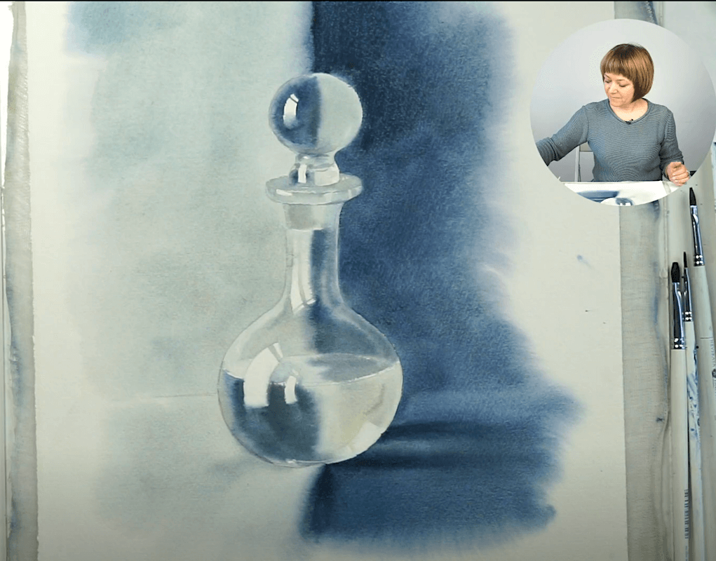Акварелист Елена Базанова проведет специальную тематическую онлайн-практику по теме «Как рисовать стекло и передавать его материальность в акварели»