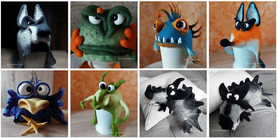 Видеоуроки по созданию шапочек: Волк, Жабка, Рыбы, Лиса, Птица, Дракон.