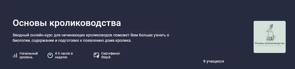 Курс предназначен для студентов профильных вузов, начинающих кролиководов, а также для всех лиц, желающих узнать больше о кроликах.