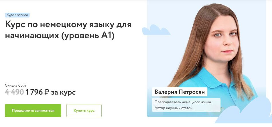 Курс позволяет научиться читать несложные тексты, понимать немецкую речь на слух, а также использовать основную грамматику и лексику в повседневной беседе.
