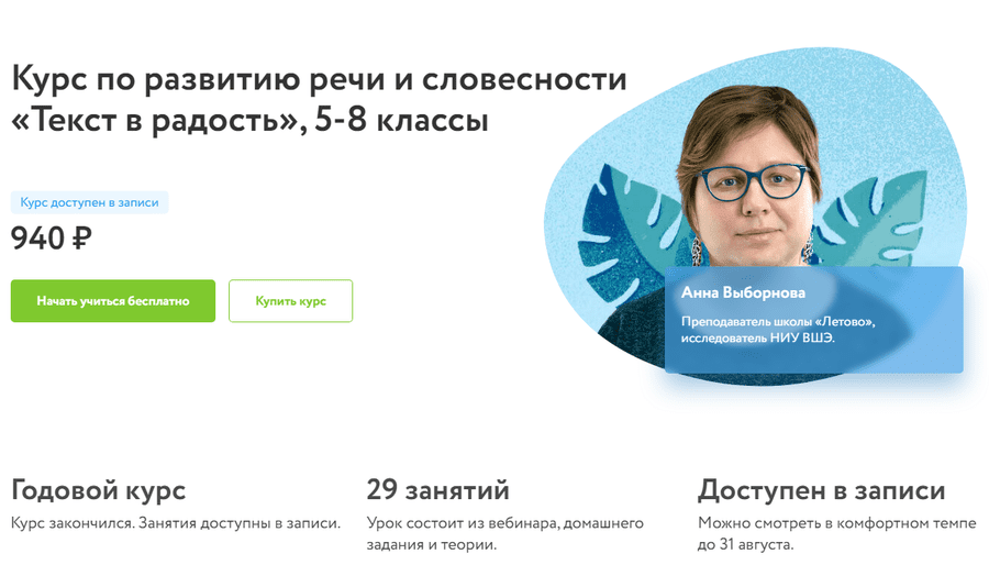 Курс помогает преодолеть творческую нерешительность и развить навык грамотного написания сочинений по русскому языку.