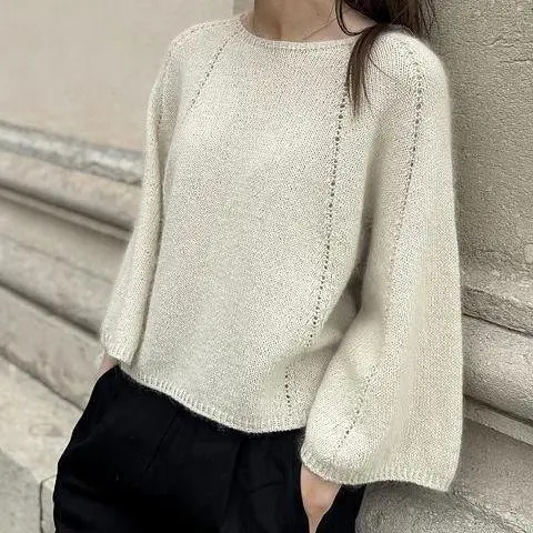 Название: Пуловер с рукавами колокол лицевой гладью сверху вниз Breath Blouse (2025)