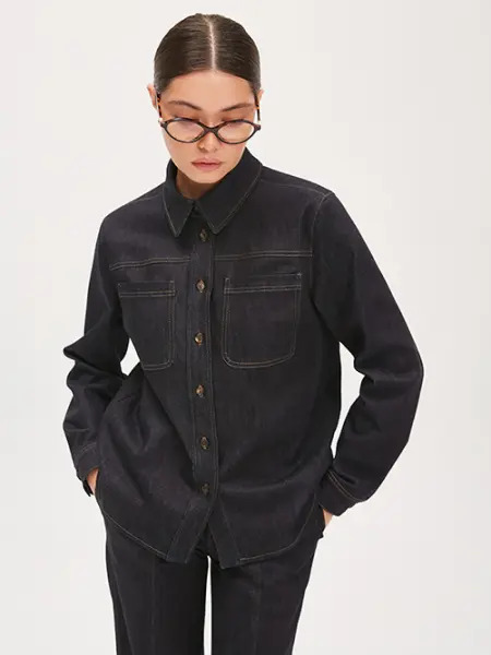 Рубашка прямого силуэта, умеренного объема с втачным рукавом, с открытой застежкой на 7 прорезных петель и пуговиц на притачной планке.