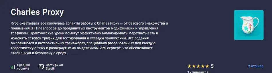 Потому что курс построен на интерактивных практических заданиях, специально разработанных под каждый инструмент Charles Proxy. Ты не просто смотришь теорию — ты сразу прокачиваешься в реальных кейсах.