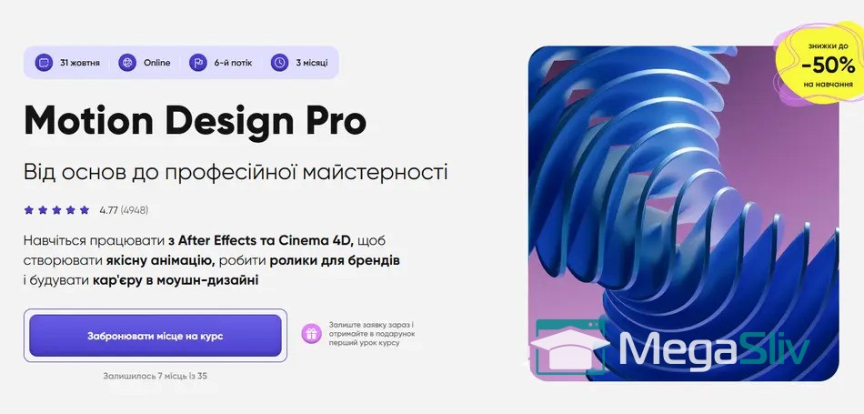 Навчіться працювати з After Effects та Cinema 4D, щоб створювати якісну анімацію, робити ролики для брендів і будувати кар'єру в моушн-дизайні