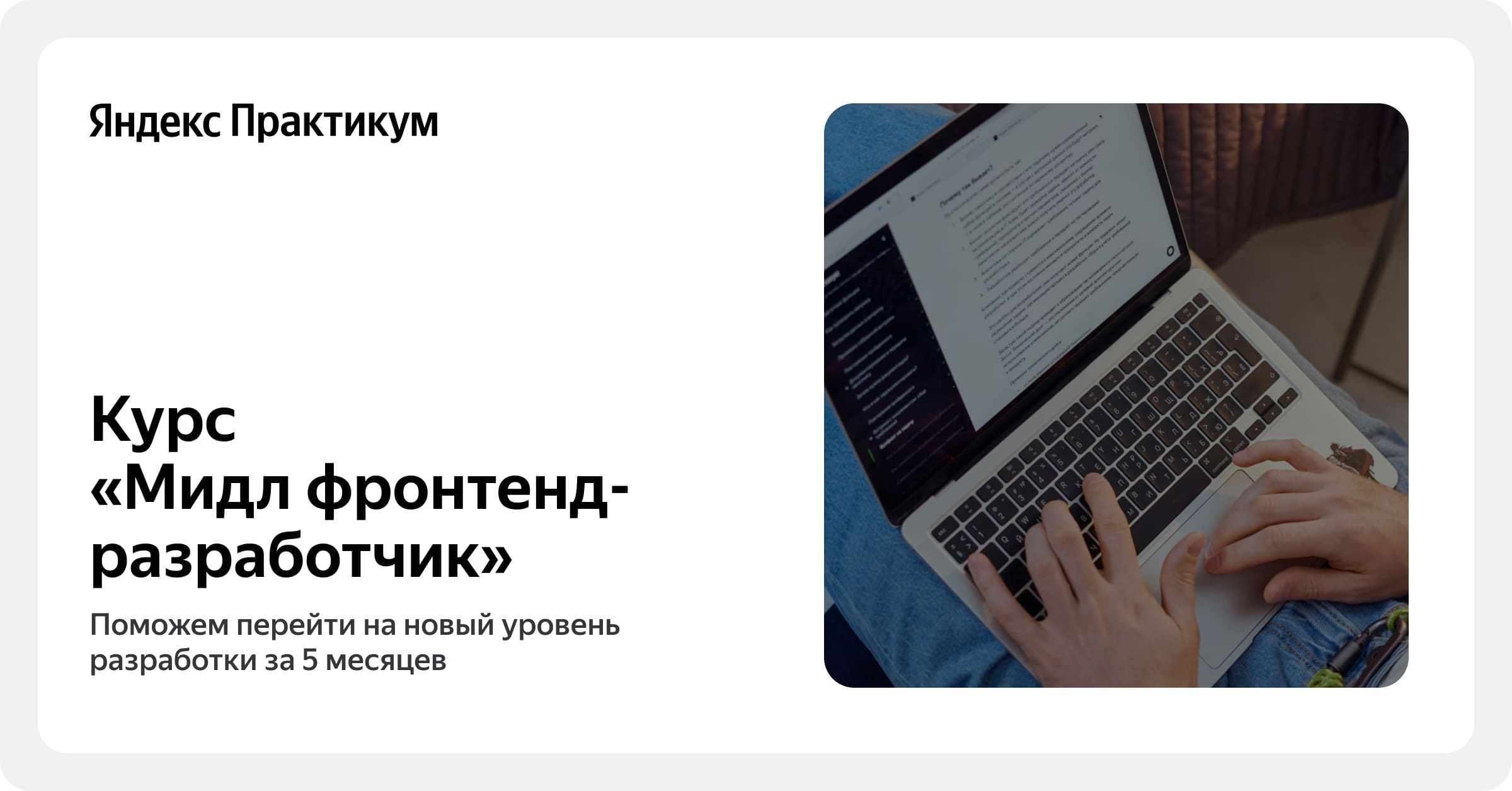 Ðа 5 меÑÑÑев обÑÑÐµÐ½Ð¸Ñ Ð²Ñ ÑможеÑе вÑÑаÑÑи до ÑÑÐ¾Ð²Ð½Ñ Ð¼Ð¸Ð´Ð» ÑÑонÑенд-ÑазÑабоÑÑика. УглÑбиÑе Ð·Ð½Ð°Ð½Ð¸Ñ Ð²Ð¾ frontend-ÑазÑабоÑке и ÑмежнÑÑ ÑÑеÑÐ°Ñ Ð´Ð¾ пÑодивнÑÑого ÑÑовнÑ, ÑделаеÑе 2 пÑÐ¸Ð»Ð¾Ð¶ÐµÐ½Ð¸Ñ Ð¸ ÑлÑÑÑиÑе...