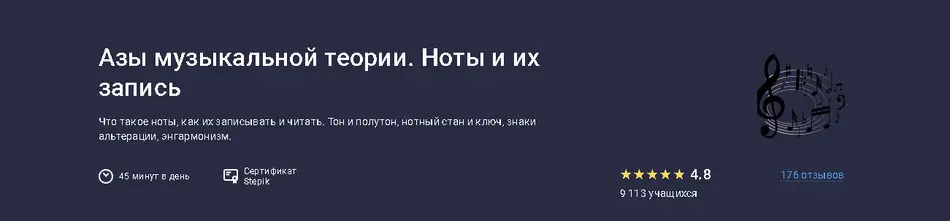 Также курс подойдёт тем, кто просто хотел бы на досуге расширить свою эрудицию самыми базовыми знаниями. Так как курс написан очень простым языком с самого нуля, это не составит проблемы даже для тех, кто совсем не знаком с музыкой.