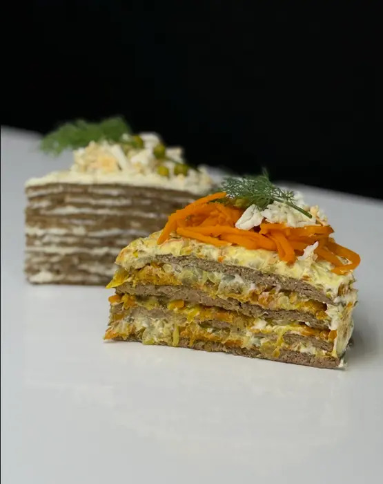 Торт Блинный — тончайшие коржи без муки , нежные , вкусные , с чесночком