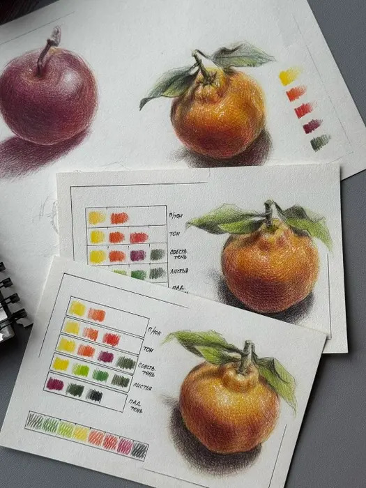 - Учимся все это проделывать разными карандашами (как чб, так и цветными) и на разных видах бумаги.