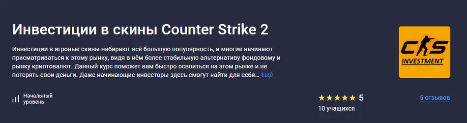 Курс предназначен как для тех, кто хотел бы освоить сферу инвестиций в Counter Strike 2, он будет полезен не только для людей, которые первый раз слышат об этом рынке, но и для начинающих инвесторов и обычных игроков.