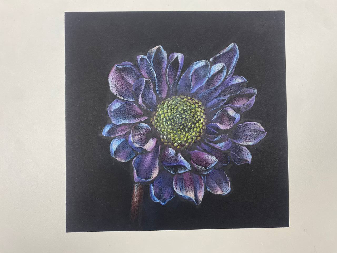 Гиперреализм цветными карандашами — это техника, позволяющая создавать изображение с поразительной детализацией и глубиной. Используя проработку текстур и наложение цветов, художник добивается эффекта, при котором работа выглядит как фотография.В этой технике особое внимание уделяется мельчайшим деталям и передаче фактур, что делает изображение максимально реалистичным. Например, в работе с хризантемой мы проработаем тычинки, лепестки и прожилки на лепестках.