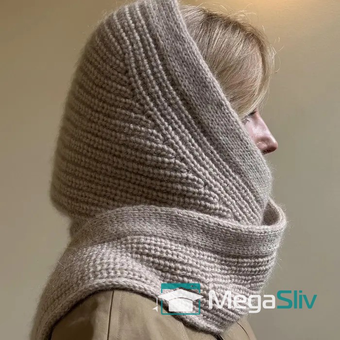 Элегантный шарф-капюшон My Flow Hood, вязаный спицами полупатентной резинкой.
