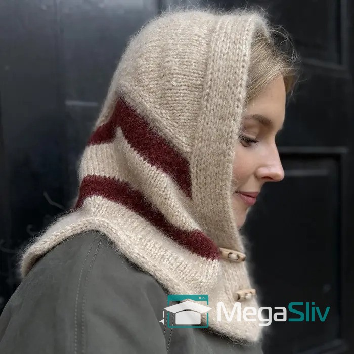 Капюшон необычной конструкции с широкими контрастными полосами Karen, вязаный спицами сверху