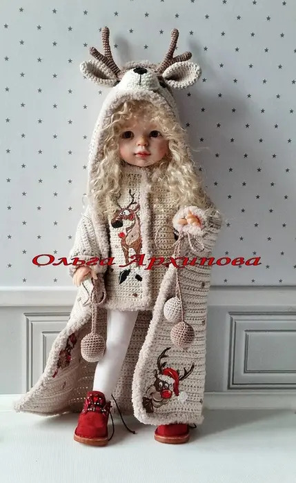 Мастер класс по вязанию комплекта одежды Новогодний олененок с элементами вышивки.