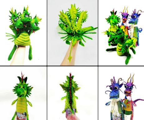 Игрушка бибабо Змей Горыныч выполнен из зеленого префельта.