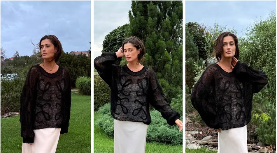 Шагая в ногу со временем, мы продолжаем активно вязать облегченные джемпера с заниженной проймой, потому что они: