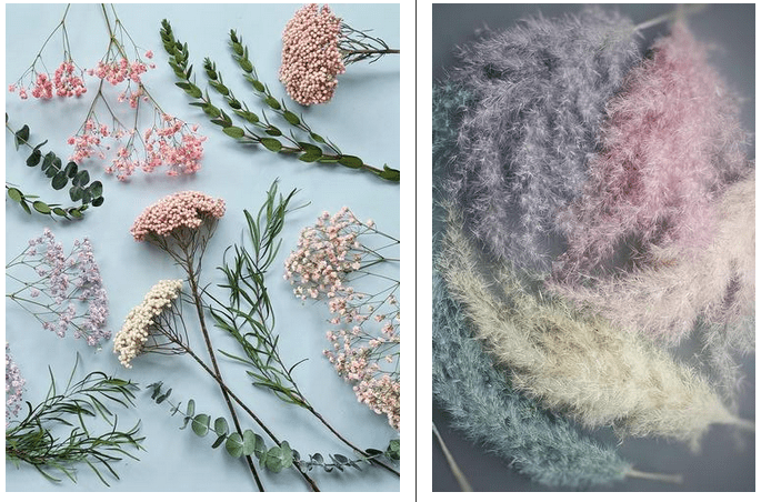 Окрасим 3 вида растений: лагурус, ковыль и кортадерию в 6 разных оттенков.