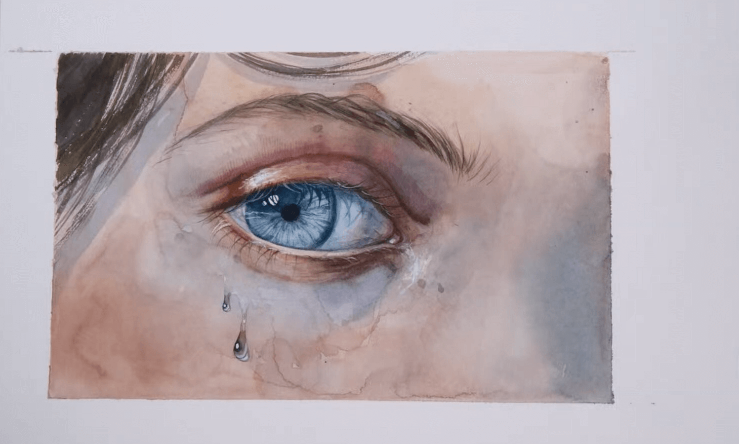 Урок по иллюстрации глаза со слезой. Разбор формы, построение, работа с цветом и влажной поверхностью в акварели. Мастер-класс Ольги Волгиной