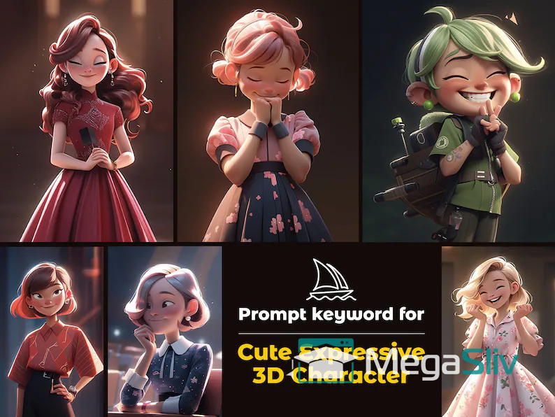 В этом листинге содержится профессиональная подсказка Midjourney для создания милого выразительного 3D-персонажа. Все, что вам нужно сделать, это просто описать прическу, наряд и выражение лица!