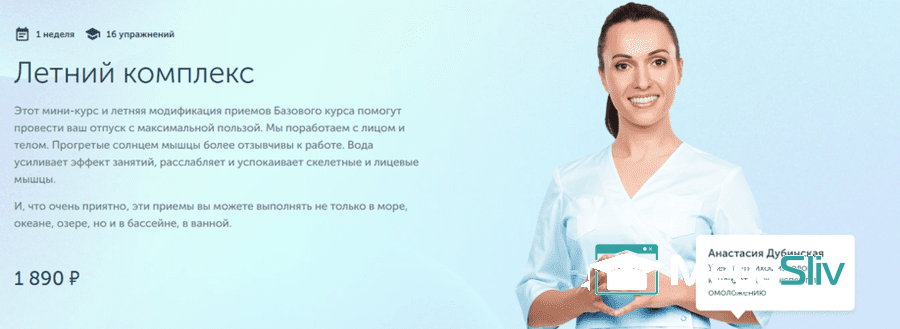 Этот мини-курс и летняя модификация приемов Базового курса помогут провести ваш отпуск с максимальной пользой. Мы поработаем с лицом и телом. Прогретые солнцем мышцы более отзывчивы к работе. Вода усиливает эффект занятий, расслабляет и успокаивает скелетные и лицевые мышцы.