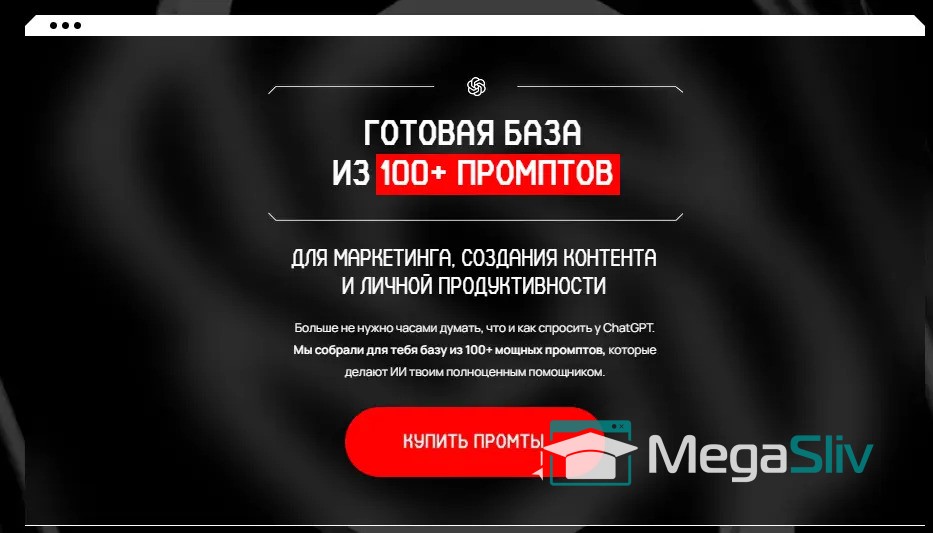 Я потратил год на то, чтобы найти формулировки, которые превращают обычный ChatGPT в мощнейший инструмент развития, а также тестируя, анализируя и собирая лучшие промпты от топовых маркетологов и экспертов, чтобы создать базу, которая делает работу с ChatGPT в разы эффективнее