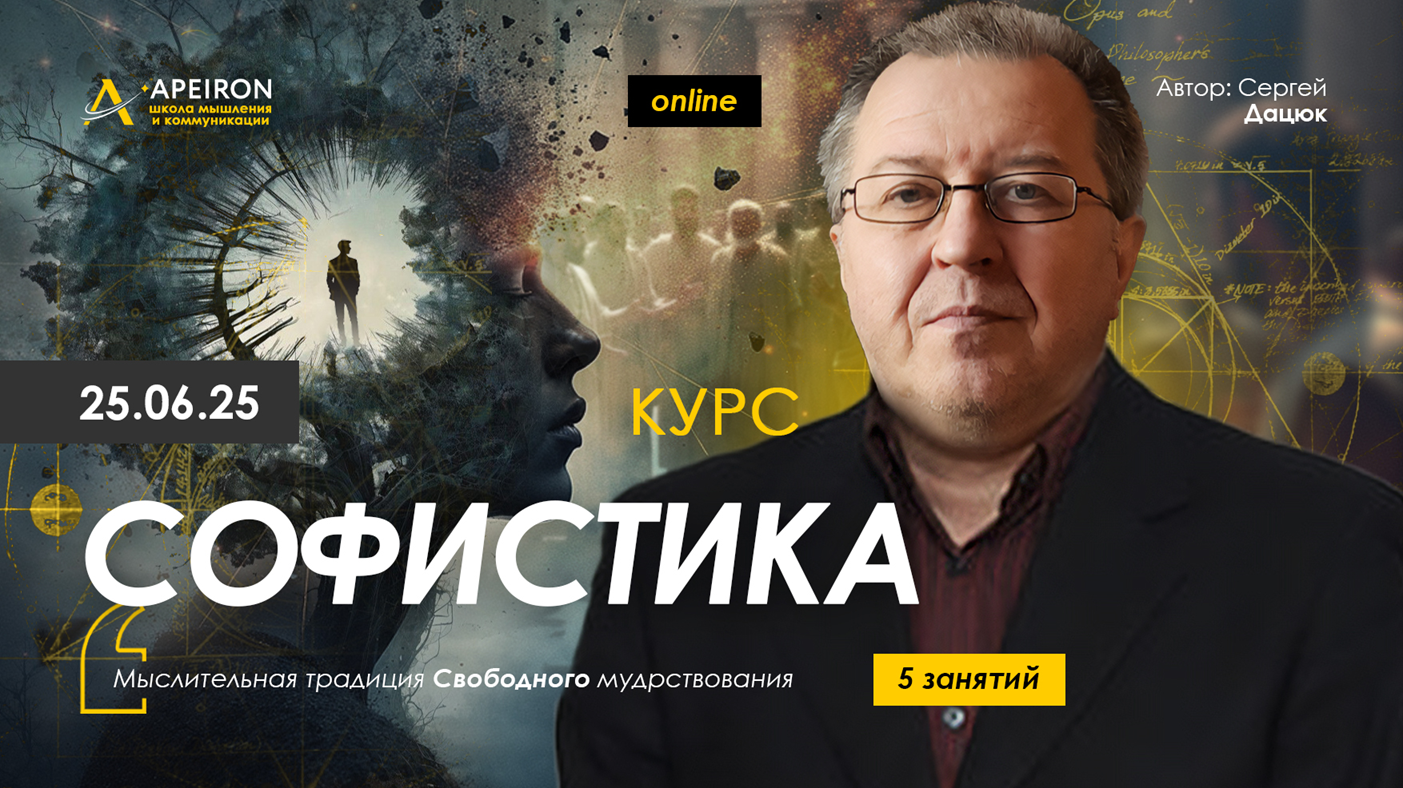 В ситуации нынешнего мирового кризиса и локально-мировой войны мы попытаемся оказаться причастными мышлению, которое умерло в мире. Мы попытаемся вернуть мышление через софистику.