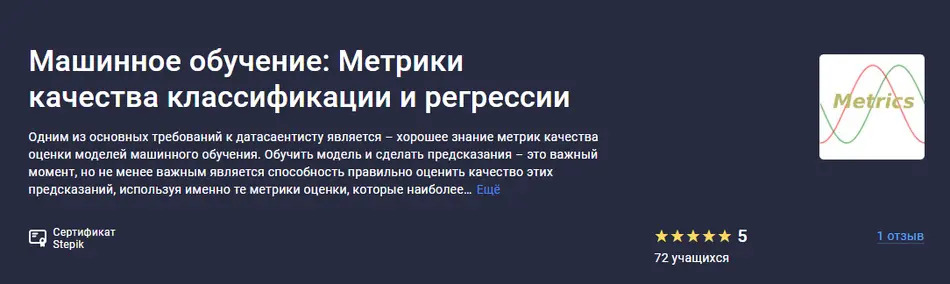 Курс для тех, кто уже делает первые шаги в изучении машинного обучения, но желает глубже изучить вопросы оценки качества моделей с использованием инструментов библиотеки Scikit-learn.