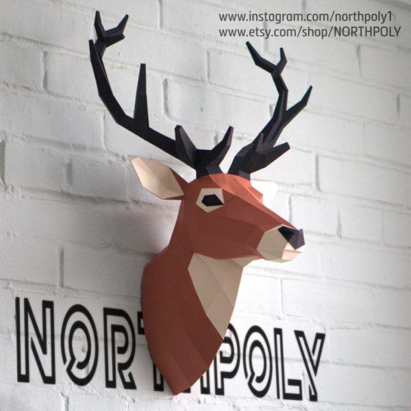 Название: [Скульптура из бумаги] Голова оленя №1 (2021)