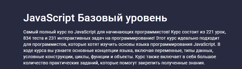 Самый полный курс по JavaScript для начинающих программистов! Этот курс идеально подходит для начинающих программистов, которые хотят изучить основы языка программирования JavaScript. В ходе курса вы узнаете основные концепции языка, включая переменные, типы данных, условные конструкции, циклы, функции и объекты. Курс также включает в себя большое количество практических заданий, которые помогут закрепить полученные знания.