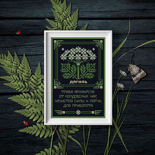 Дягиль находится в шестой ячейке «Купальского травника». Но его можно вышить в любой другой.