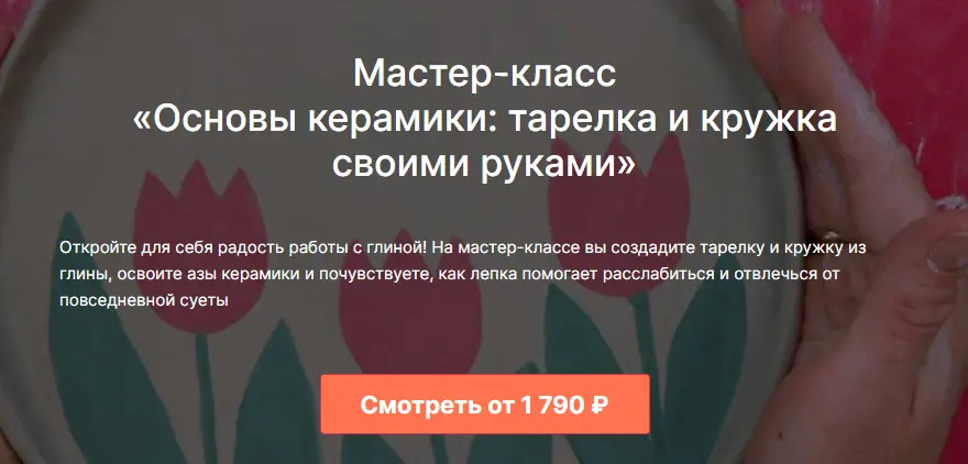 Откройте для себя радость работы с глиной! На мастер-классе вы создадите тарелку и кружку из глины, освоите азы керамики и почувствуете, как лепка помогает расслабиться и отвлечься от повседневной суеты