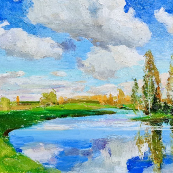 Белые и пушистые, огромные и лёгкие облака уже бегут по синему небу. Совсем скоро они побегут на наших холстах, на онлайн-практике от Тамары Камаевой