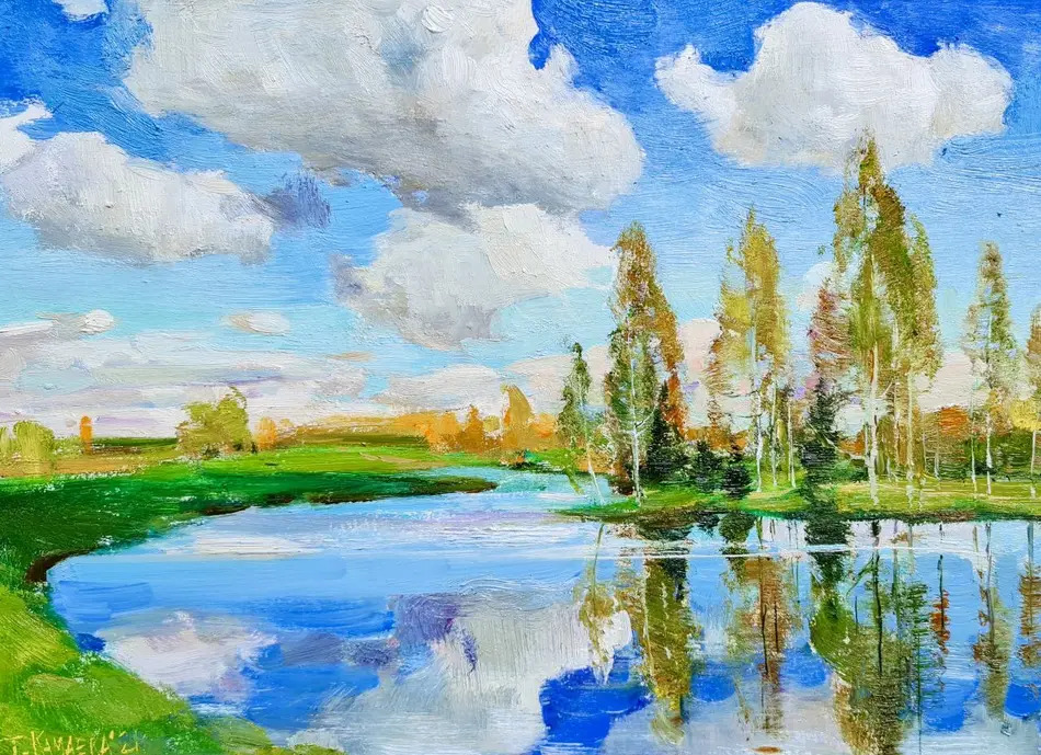 Белые и пушистые, огромные и лёгкие облака уже бегут по синему небу. Совсем скоро они побегут на наших холстах, на онлайн-практике от Тамары Камаевой
