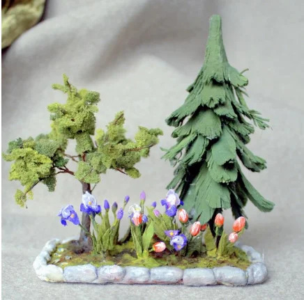 - оформите композицию, сделав каменный бордюр (все из ваты)