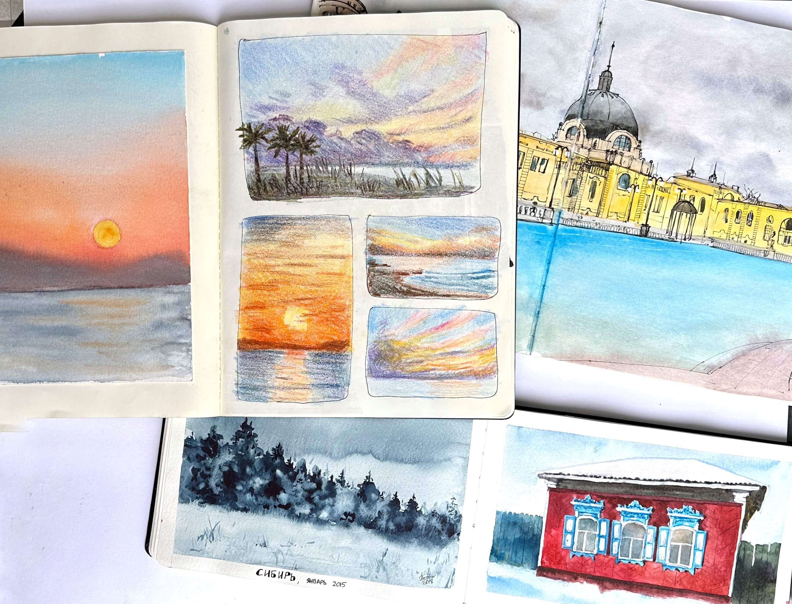 Курс по созданию путевых заметок с помощью скетчинга, акварели и коллажа. Независимо от навыков рисования, вы научитесь превращать впечатления от путешествий в уникальный дневник воспоминаний, который сохраняет атмосферу каждого момента.