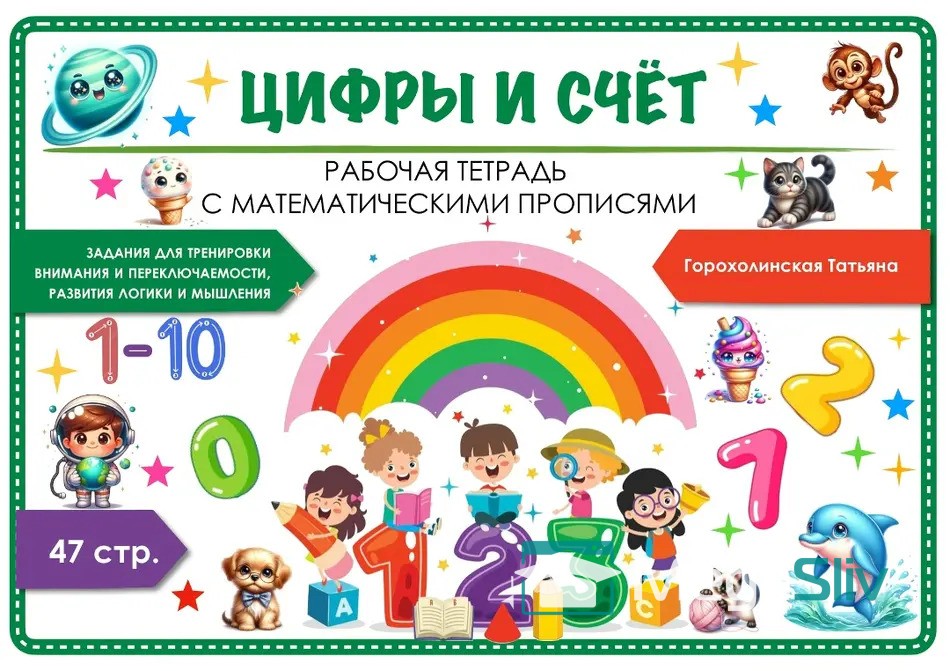 Рабочая тетрадь 47 страниц . От 1 до 10.
