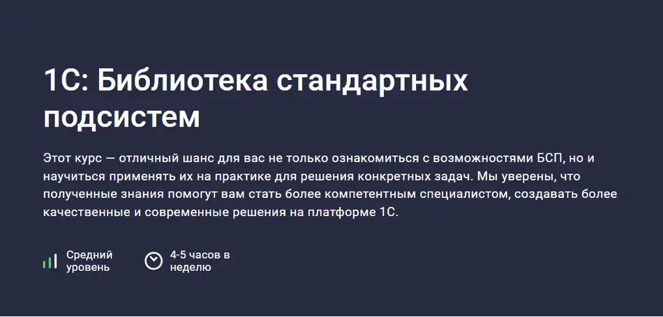 Этот курс — отличный шанс для вас не только ознакомиться с возможностями БСП, но и научиться применять их на практике для решения конкретных задач. Мы уверены, что полученные знания помогут вам стать более компетентным специалистом, создавать более качественные и современные решения на платформе 1С.