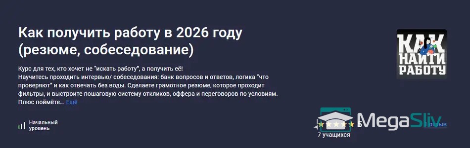 Курс для тех, кто хочет не “искать работу”, а получить её!