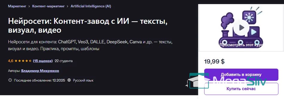 Нейросети для контента: ChatGPT, Veo3, DALLE, DeepSeek, Canva и др. — тексты, визуал и видео. Практика, промпты, шаблоны